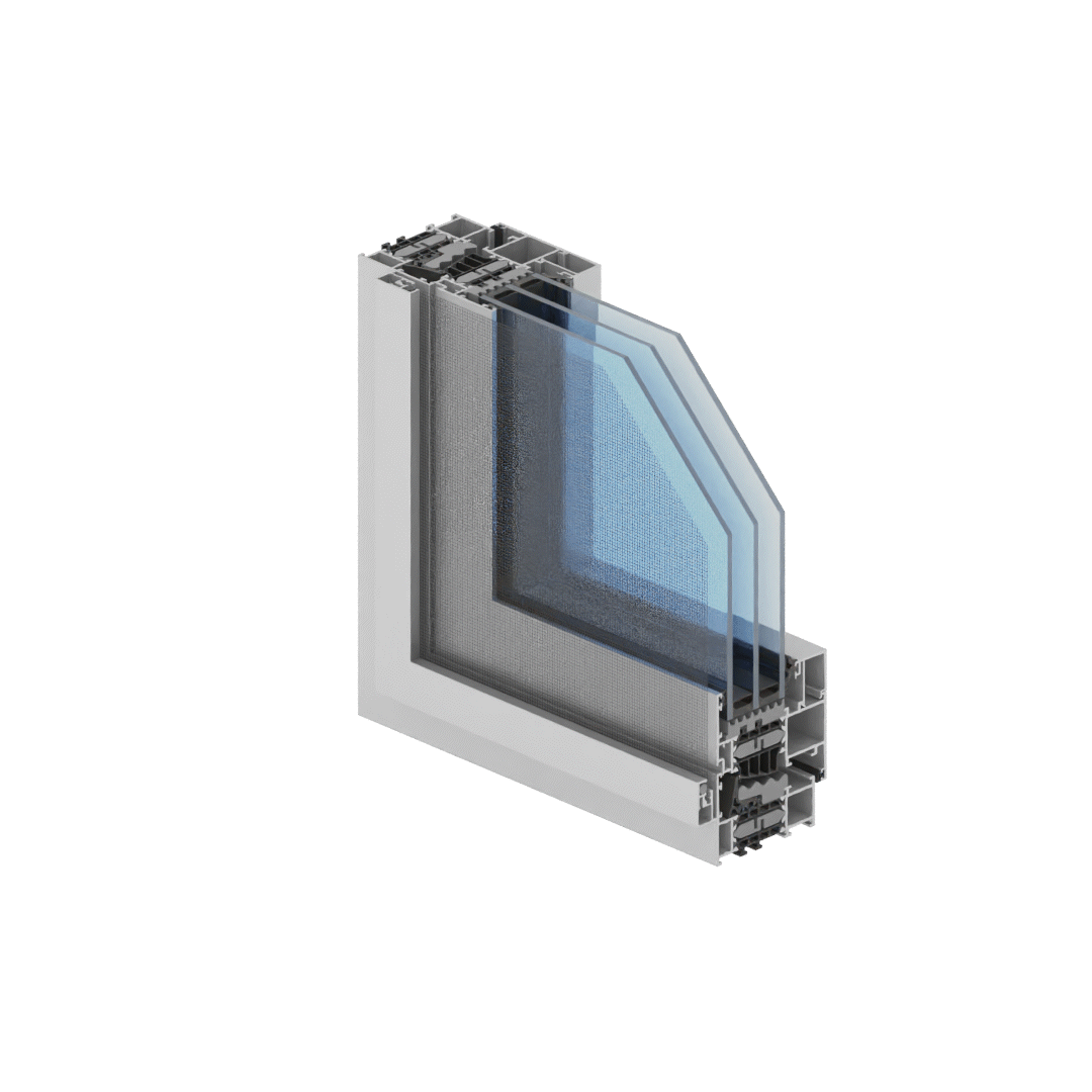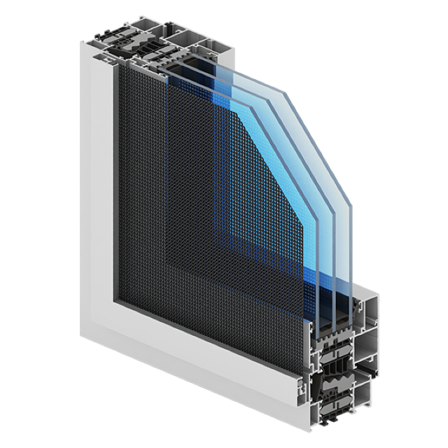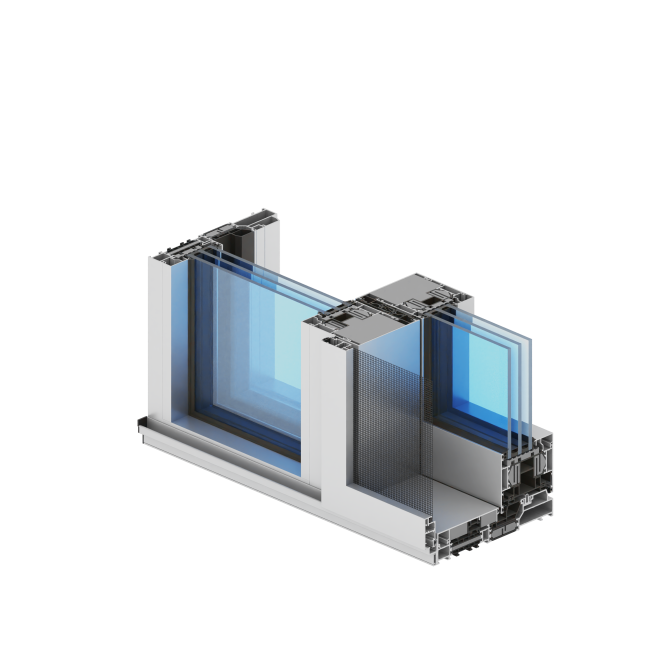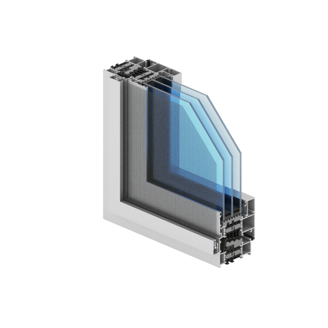 - Stumdomų langų sistemoms skirtų tinklelių viršutiniuose ir apatiniuose kreipiamuosiuose bėgeliuose sumontuoti gaubtai, kurie uždengia ir paslepia visus tvirtinimo varžtus bei užtikrina tvarkingai atrodančią sistemą.