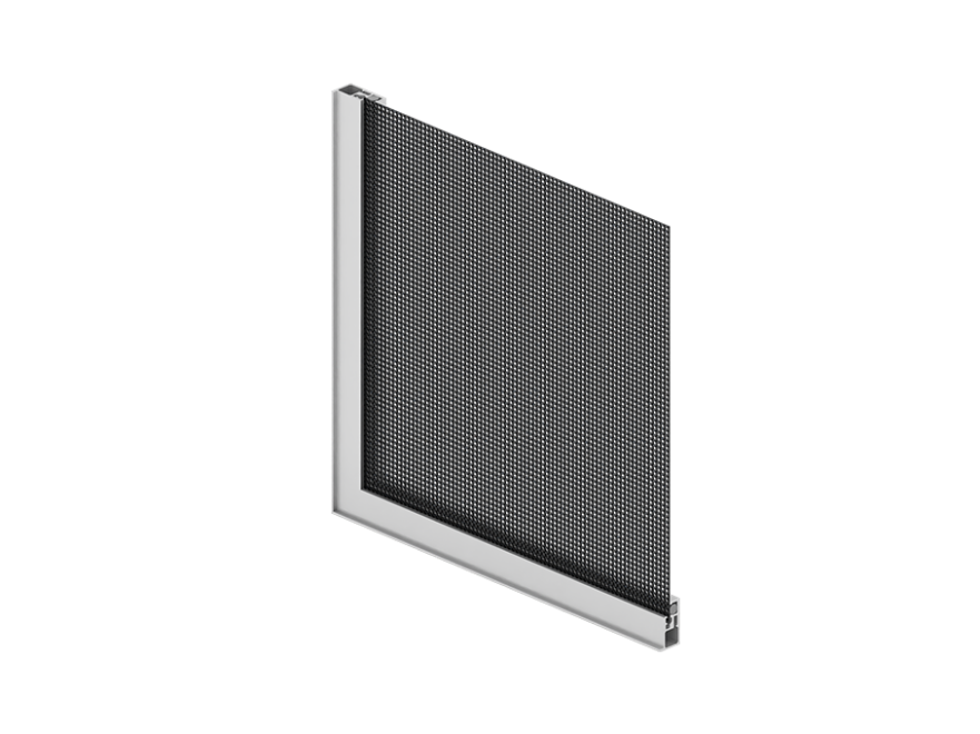 - Tvirtas, pilkos spalvos stiklo pluošto tinklelis sumontuotas specialiame aliuminio rėme.