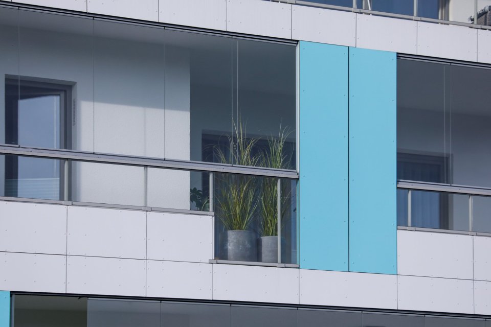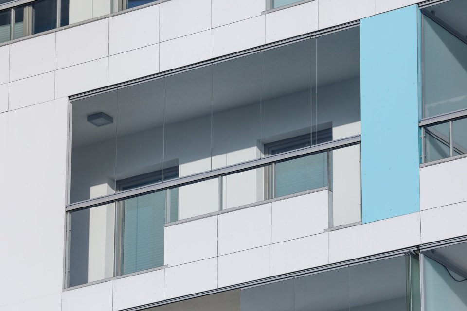 Railing - sistemos apsauginė plokštė balkono perdangos priekiui (336 mm); sistemos apsauginė plokštė ir prailginimas balkono perdangos priekiui